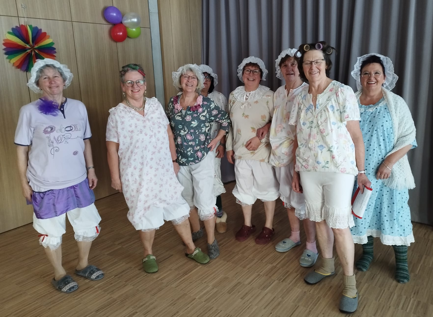 Der Kath. Frauenbund St. Konrad feierte Fasching und lud seine Seniorinnen in den bunt dekorierten Saal des Pfarrheimes zu einem lustigen Kaffeenachmittag. Mit einem passenden „Willkommens-Reim“ begrüßte Agnes Hartwig vom Vorstandsteam die teilweise bunt maskierten, gut gelaunten Gäste, darunter auch Pfarrer Johannes Lukas. Nach Kaffee und Krapfen brachte Alleinunterhalter Rudi Harrer mit seiner Musik Stimmung in den Saal und so hielt es die Seniorinnen zur Polonaise nicht mehr auf den Stühlen. Originell verkleidet mit Nachthemden und Schlafhauben sorgten die Frauenbund-Frauen aus der Vorstandschaft mit dem „Nachthemd-Lied“ für Heiterkeit und für den Sketch „die Bowle“ erhielten die Schauspielerinnen vom Frauenbund viel Beifall. Viel zu schnell verging der fröhliche Nachmittag mit Tanzen, Schunkeln und guter Unterhaltung im Pfarrheim.