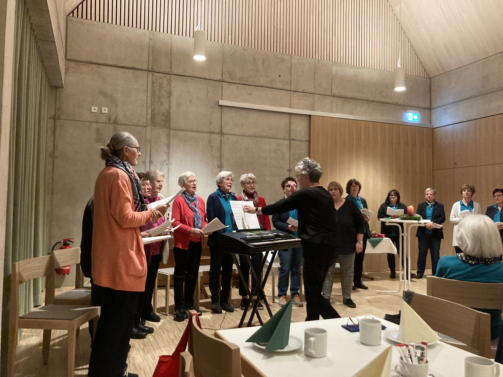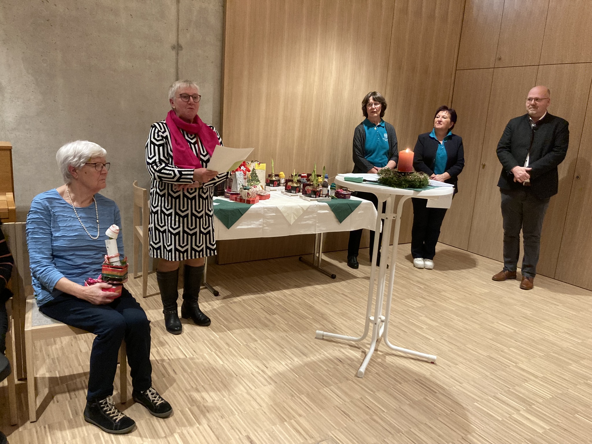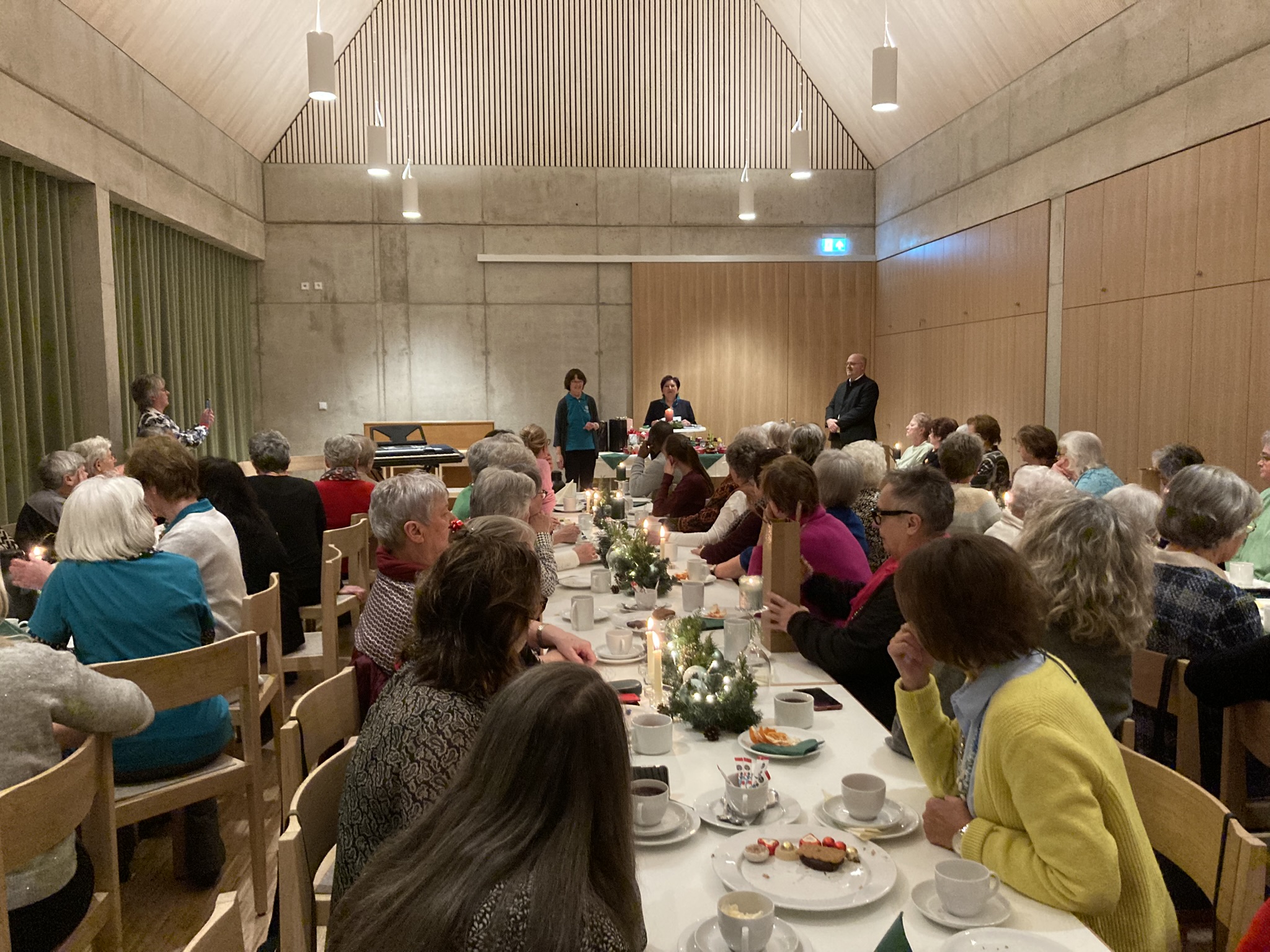 Die Freude auf die erste Veranstaltung im neuen Pfarrheim war groß und so folgten der Einladung des Kath. Frauenbundes zur Adventfeier in den festlich dekorierten, hellen Pfarrsaal 70 Frauen aus der Gemeinschaft. Agnes Hartwig vom Vorstandsteam begrüßte alle Gäste, den Hausherrn und Geistl. Beirat, Pfarrer Johannes Lukas und bedankte sich für dessen nervenstarkes Durchhaltevermögen während der Bauzeit des Heimes. Unter den Gästen befanden sich weiterhin Pfarrvikar Pater Patrick, Gemeindepraktikantin Kerstin Hasenfürter, Pfarrerin Barbara Berckmüller von der evangelischen Nachbargemeinde St. Markus, die Bezirksvorsitzende des Frauenbundes Angelika Vogl aus Oberviechtach sowie der Frauenchor mit Angela Sauer. Mit den Worten: „Warten im Advent ist anders, warten ist auch Hoffnung“, eröffnete Agnes Hartwig die Feier. Am Beispiel von „ drei Hoffnungswegen“, „Maria auf ihrem Weg zu Elisabeth, zwei Menschen auf dem Weg zum Jordan und Frauen auf dem Weg zum Weihnachtsmarkt“ trugen Anita Hösl, Annette Betting, Agnes Hartwig, Monika Völkl, Regina Weiß, Erika Zierock und Gabi Langhoff verschiedene Texte zum Thema Hoffnung vor. Musikalisch umrahmte der Frauenchor unter Leitung von Angela Sauer am Klavier und E-Piano die Feier und mit dem Segen von Pfarrer Lukas endete der besinnliche Teil des Abends. Fleißige Hände aus der Vorstandschaft hatten Glühwein, Tee, Stollen und Lebkuchen vorbereitet und bewirteten die Gäste. Erfreulicherweise konnten anschließend sieben neue Frauen feierlich mit einem Geschenk in die Gemeinschaft des Frauenbundes aufgenommen werden, Lydia Meier, Irmgard Sperber, Astrid Ermer, Kerstin Schmola, Sybille Amm, Kerstin Weisheit, Monika Grötsch und Carolin Kett. In ihrer Ansprache betonte die Bezirksvorsitzende, dass Frauen Solidarität brauchen und dass früher erkämpfte Rechte erhalten bleiben müssen. Ihr Dank ging auch an die Vorstandsfrauen im Zweigverein und ihre Arbeit vor Ort. Pfarrer Lukas dankte der Vorstandschaft für die schönen Ideen und das interessante Programm das ganze Jahr über und wünschte sich, dass das neue Pfarrheim mit Leben erfüllt werde. Viele Frauen halten dem KDFB St. Konrad seit vielen Jahren die Treue und deshalb galt es, langjährige Mitglieder zu ehren. Zusammen mit Pfarrer Lukas überreichten A. Vogl, A. Hartwig und A. Hösl die Goldnadel mit Stein für 50jährige Mitgliedschaft an Anni Trepl, Irma Lang und Martha Hanweck. 45 Jahre beim Frauenbund sind Ingrid Häupl, Elisabeth Zuber und Ida Pongratz und 35 Jahre Giselinde Suttner, die Silbernadel für 20 Jahre Mitgliedschaft erhielten Christina Fisher und Angelika Pfleger, Sieglinde Schmid und Agathe Lingl halten dem Verein seit 15 Jahren die Treue. Alle Frauen bekamen ein liebevoll verpacktes Geschenk. Wie jedes Jahr zeigte sich auch bei dieser Adventfeier der Kath. Frauenbund wieder großzügig und bedachte Pfarrer Lukas, Pater Patrick, den Frauenchor, die Ministranten und Pfarrerin Berckmüller für die Pfarrgemeinde St. Markus, (verbunden mit einem Dankeschön für die Benutzung des Gemeindehauses) mit Geldspenden. Zum Abschluss gab es noch ein herzliches Dankeschön von Agnes Hartwig an die „Mädels“ vom Vorstand für die geleistete Arbeit im letzten Jahr, den Teamgeist und Zusammenhalt. Alle freuen sich schon auf viele schönen Begegnungen im Verein im neuen Jahr 2026.
